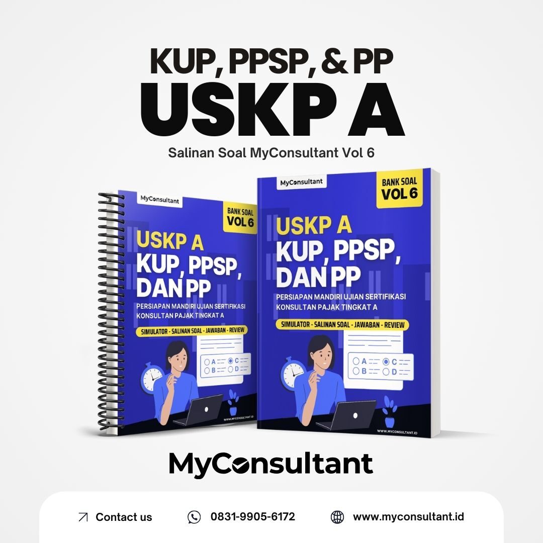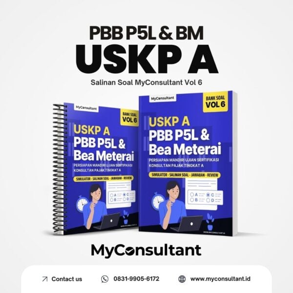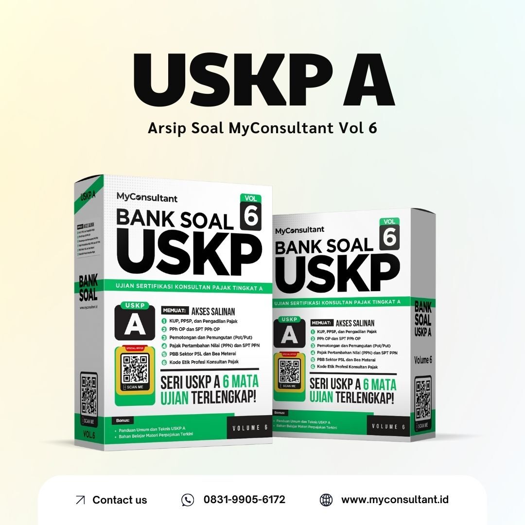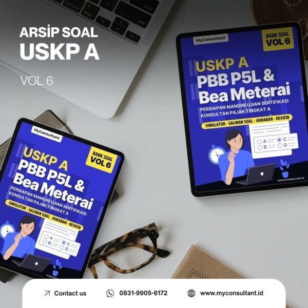 Kuasai pola soal-soal USKP A sebelumnya dan pahami materi sesuai regulasi perpajakan terkini. MyConsultant Vol 6 adalah backup/arsip/salinan soal USKP A dari Bank Soal MyConsultant yang dapat diakses oleh seluruh anggota. Bukan hanya Vol 6, Anda akan mendapat akses seluruh salinan soal sebelumnya mencakup Vol 1, Vol 2, Vol 3, Vol 4, Vol 5, Vol 6, dan Vol 7.
