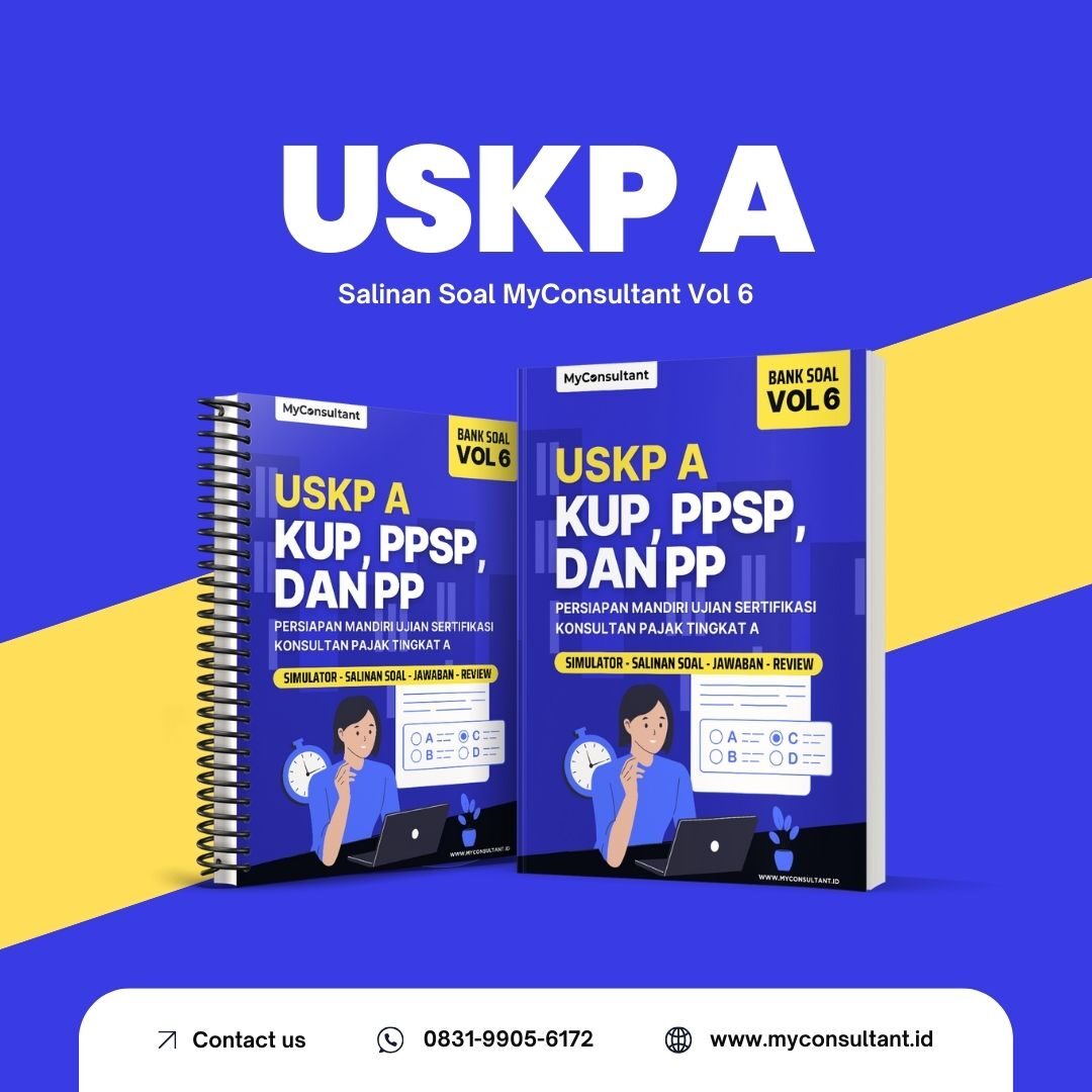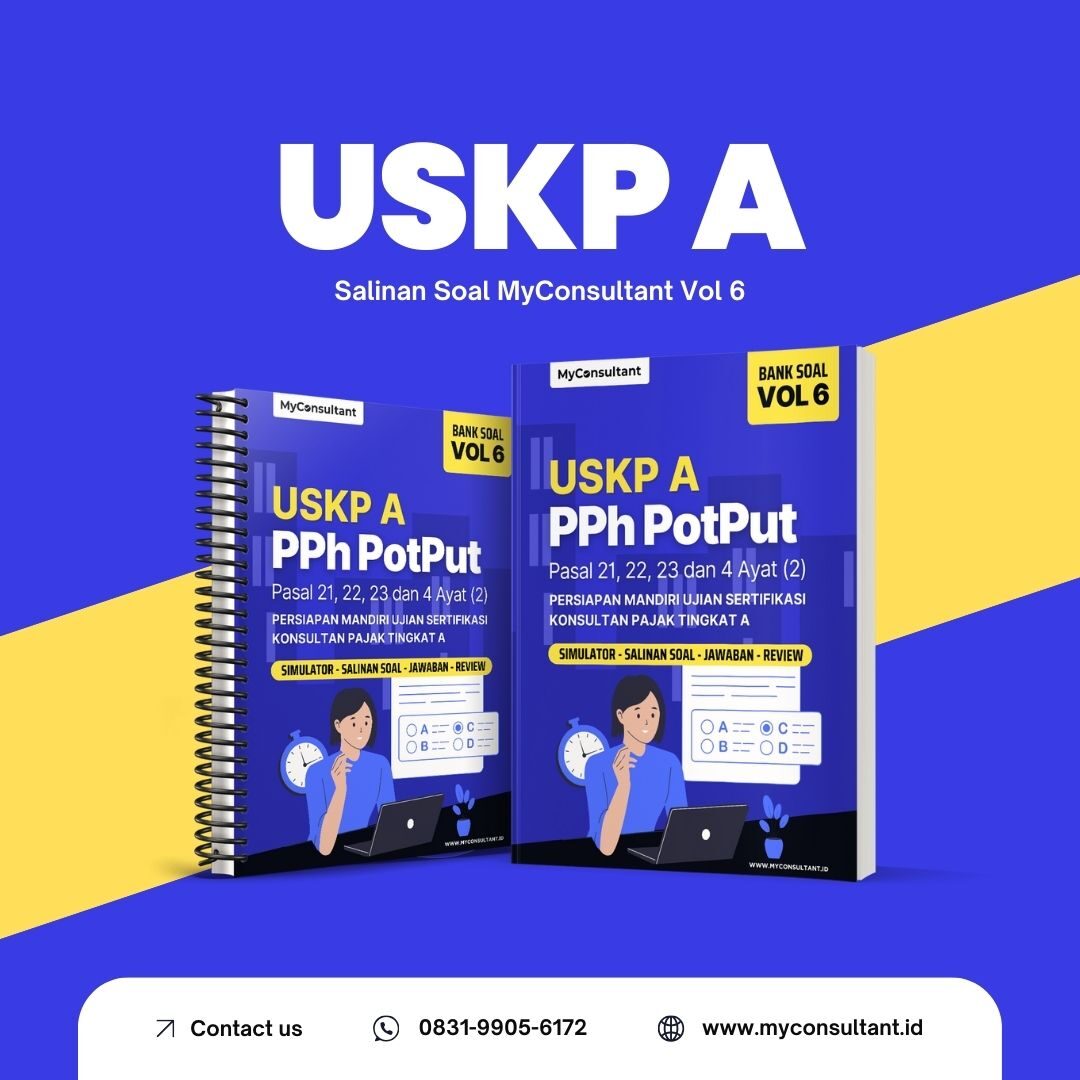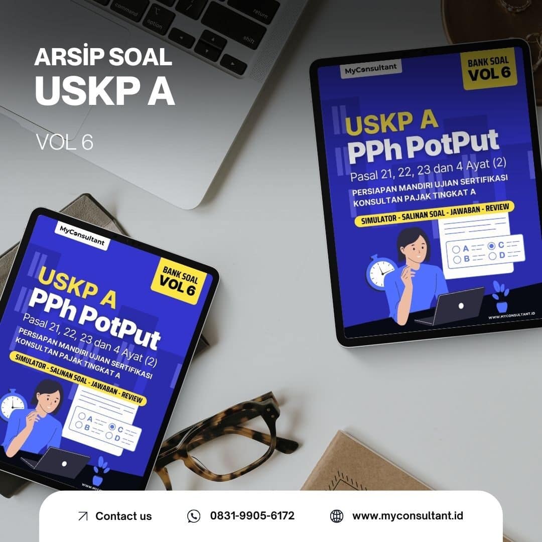 Kuasai pola soal-soal USKP A sebelumnya dan pahami materi sesuai regulasi perpajakan terkini. MyConsultant Vol 6 adalah backup/arsip/salinan soal USKP A dari Bank Soal MyConsultant yang dapat diakses oleh seluruh anggota. Bukan hanya Vol 6, Anda akan mendapat akses seluruh salinan soal sebelumnya mencakup Vol 1, Vol 2, Vol 3, Vol 4, Vol 5, Vol 6, dan Vol 7.